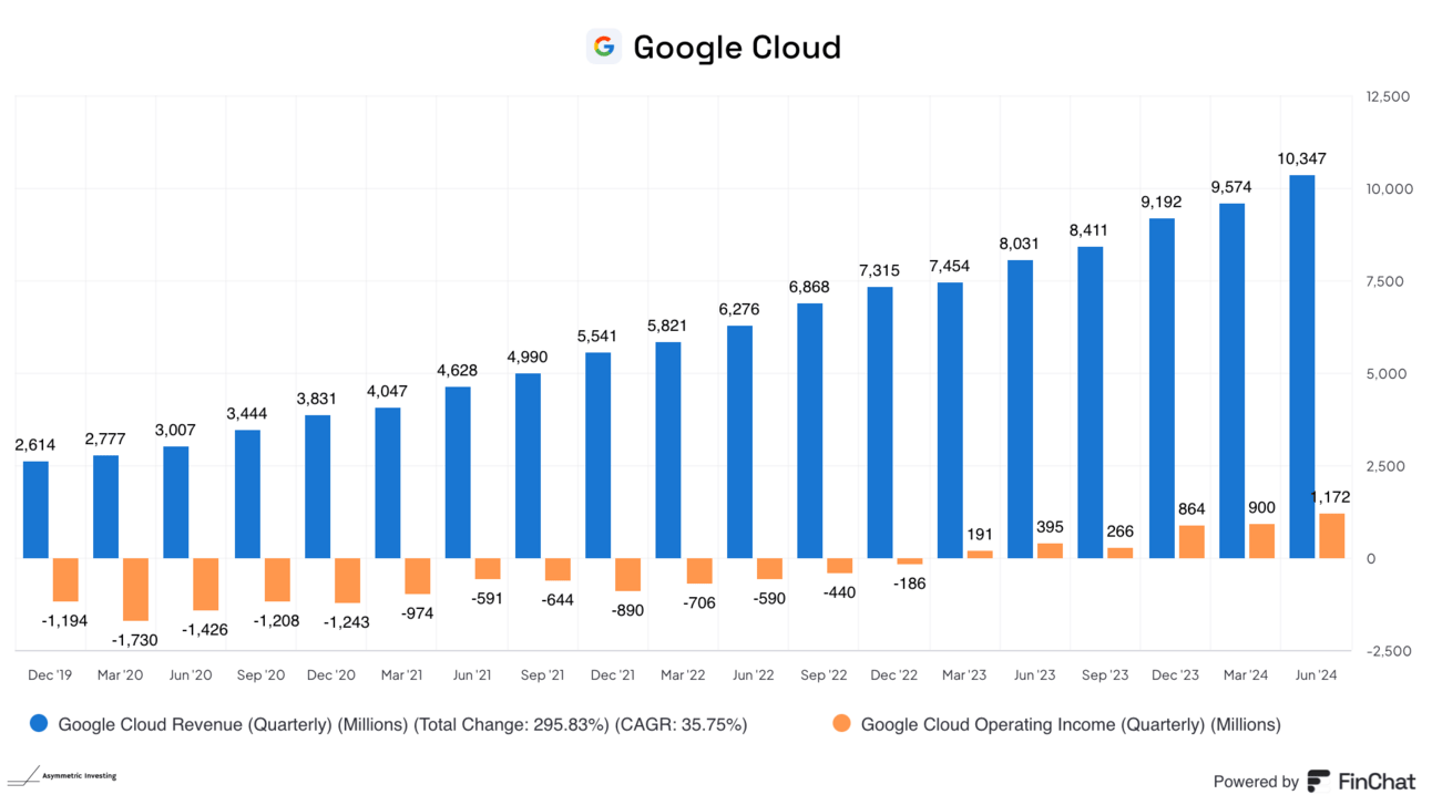 The cloud is also a growth machine that has turned solidly profitable. If artificial intelligence is indeed a disruptive business in tech, this could be the future of Alphabet and it’s barely registering on the company’s financials given the size of search.