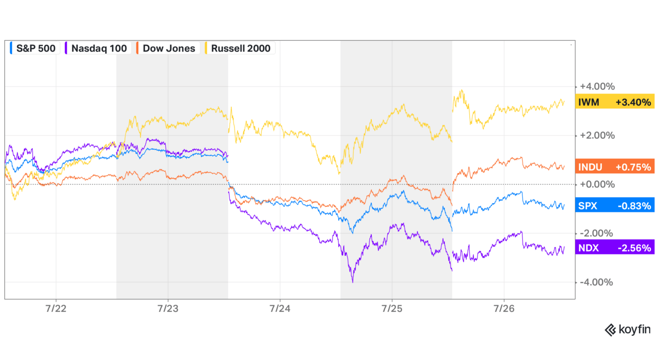The story of the week was once again the resurgence of small-cap stocks while big tech took a major step back. Investors are questioning if the AI explosion that’s been priced in over the past year is overdone given the incredible amount of money spent to advance the technology with little financial impact to show for it. And it’s no surprise that Alphabet was caught up in the noise after reporting earnings, which I’ll get to below.