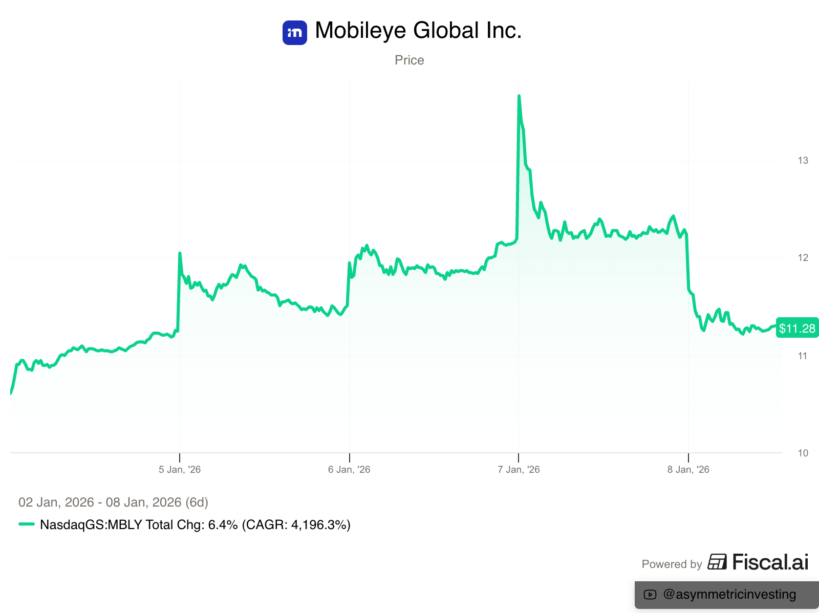 When I bought shares of Mobileye $MBLY ( ▼ 0.95% ) for the Asymmetric Portfolio on January 2, 2026, I didn’t think shares would skyrocket shortly after. And I didn’t expect that enthusiasm to die off only hours after hitting .
