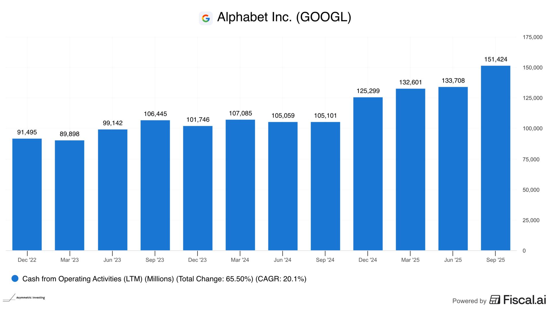 The improvement in the core business means Alphabet has more cash flow coming from operations than ever before.