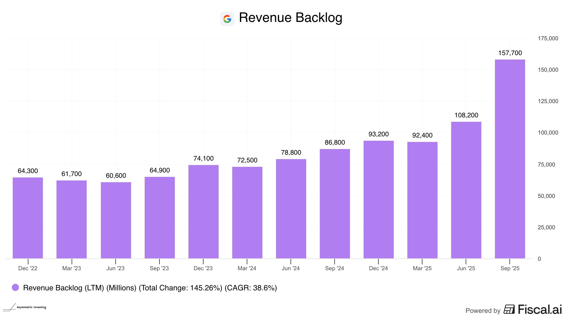 And customers are coming onto Google Cloud faster than the company can build capacity, a problem any company would like to have. Backlog was up nearly 50% sequentially to $157.7 billion.