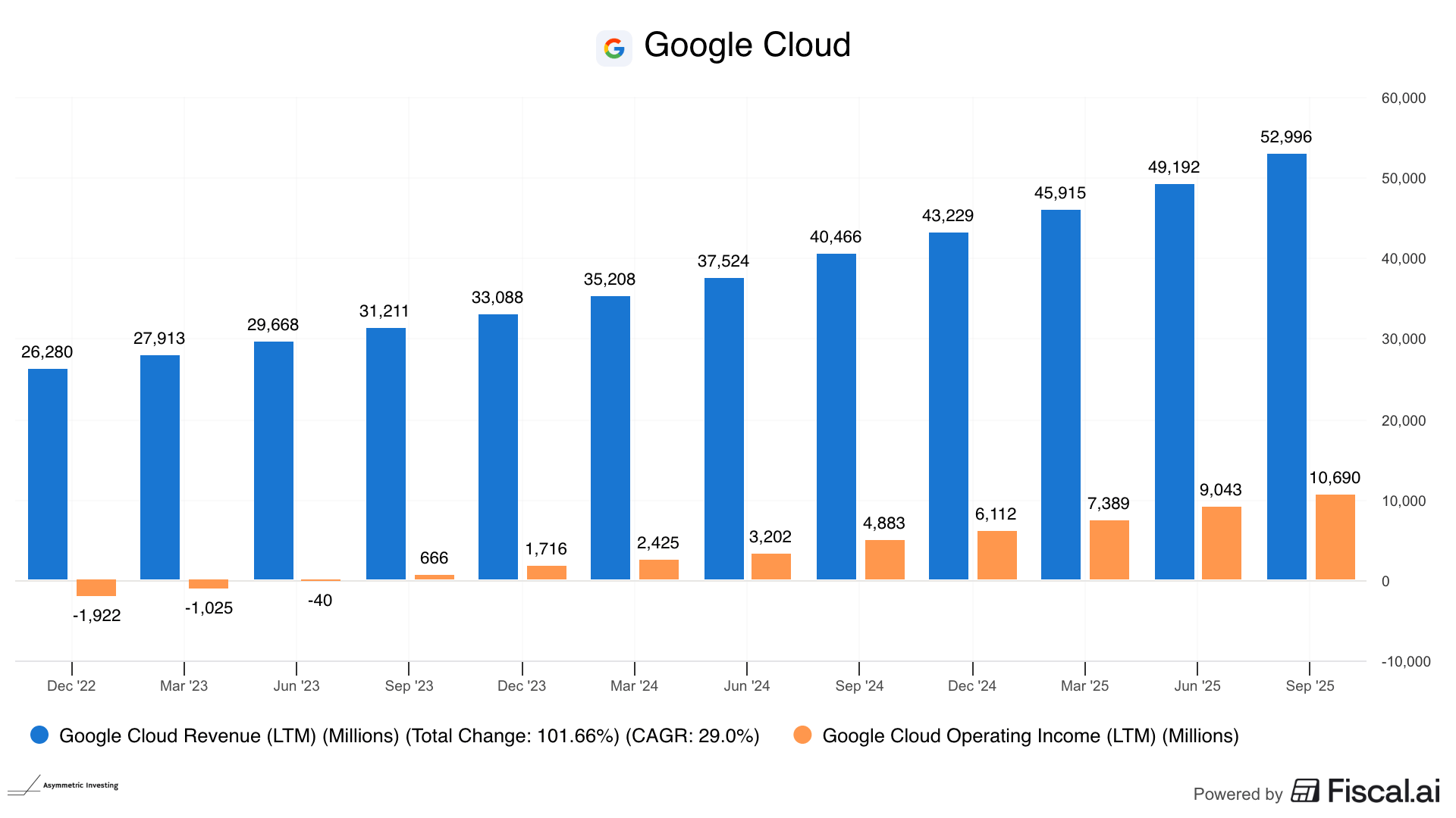 Google Cloud alone may already be worth $1 trillion, and given the momentum, I don’t see how the growth stops anytime soon. Unlike Oracle’s backlog, which is almost entirely OpenAI, Google Cloud has hundreds of customers, which makes it “antifragile”.