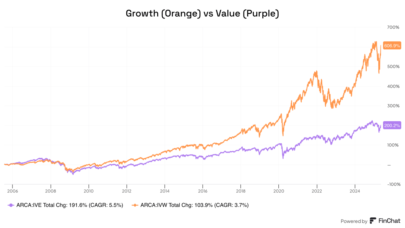 Maybe short-term. But over time, value vastly underperforms growth, so the perception of safety results in lower returns.