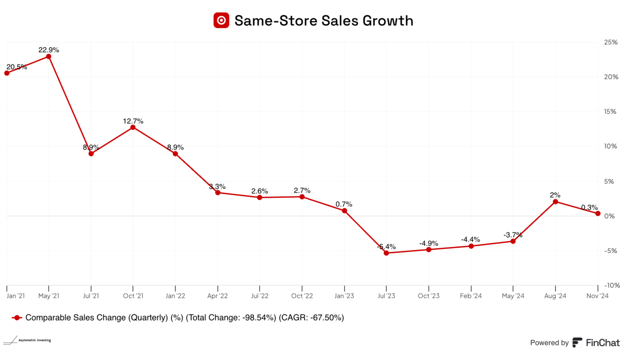 Home Depot has also reported negative same-store sales comps for 7 straight quarters.