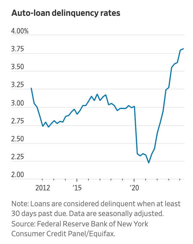 And to add another data point, auto loan delinquencies are rising. This one is worrying.