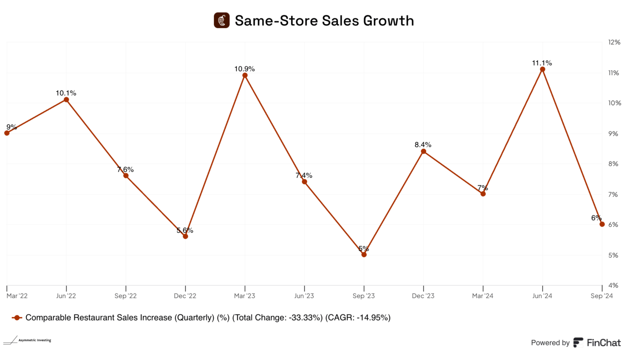 But Chipotle is crushing it, growing same-store sales by 6% last quarter and expecting continued momentum.