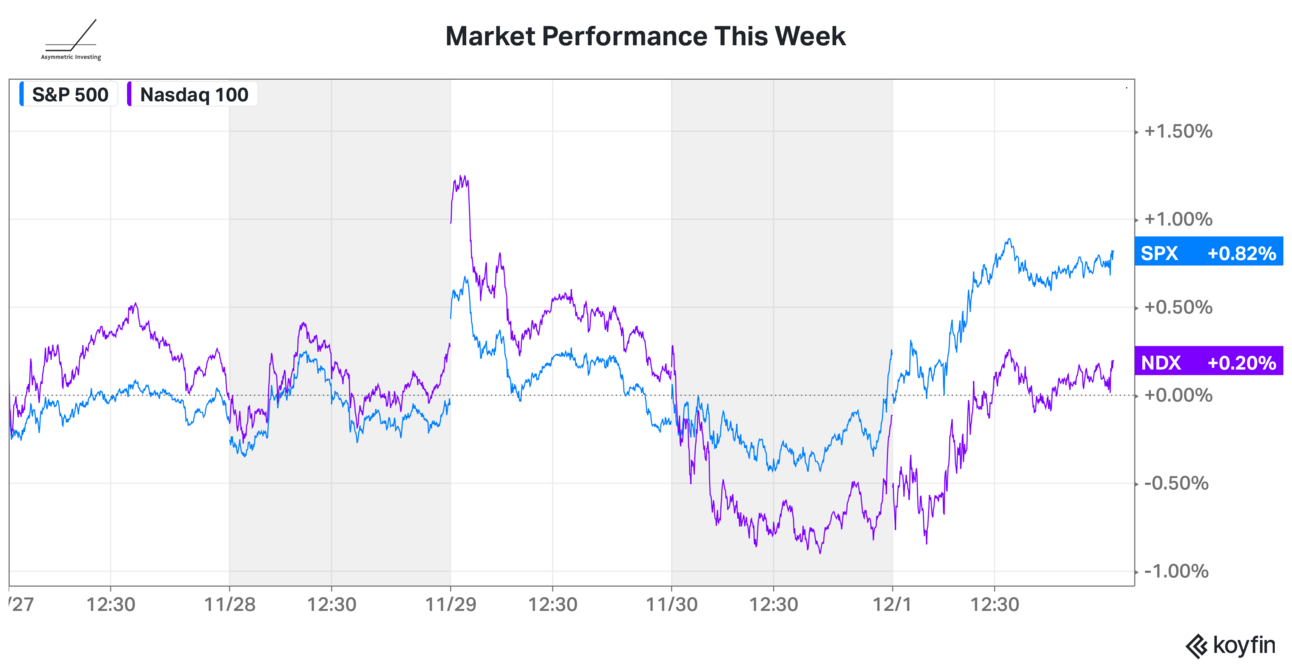The market was choppy this week on relatively little economic news outside of some early holiday spending data. Online sales for Cyber Week were up 7.8% from a year ago and physical traffic at retailers was up 1.5% last weekend. Maybe the consumer is doing well after all?
