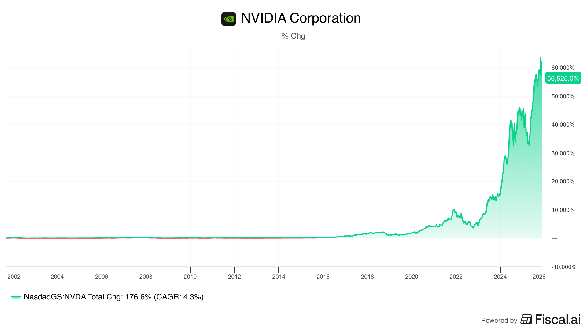 Take NVIDIA as an example. The stock has been an incredible performer over the past two decades.