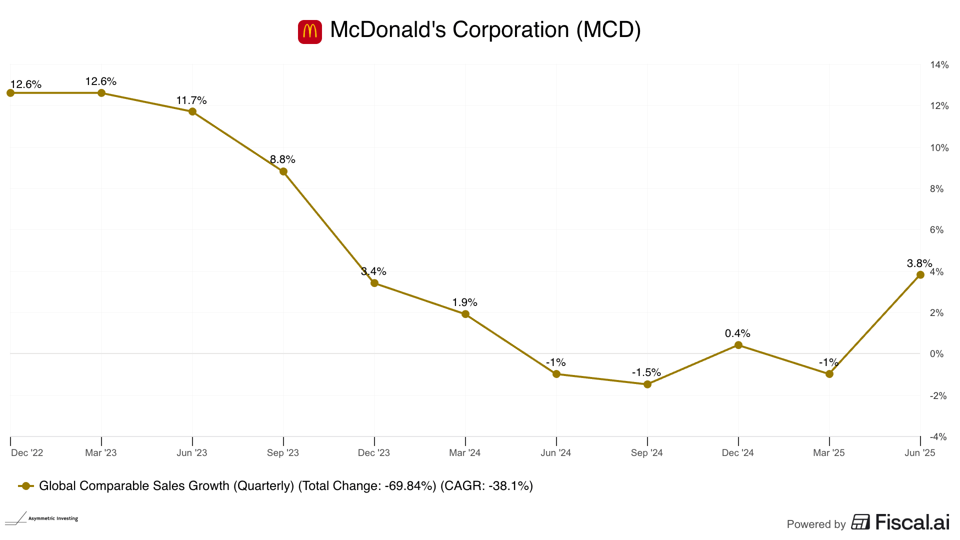 If the consumer is weak, it would make sense that McDonald’s would be seeing growth, as we saw in 2008 when same-store sales jumped 6.9% despite a deep recession. But that wasn’t the case until the last few months.